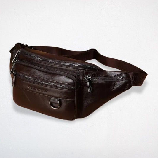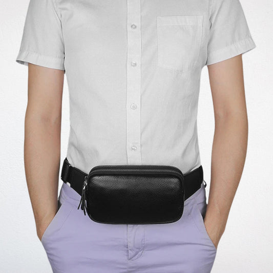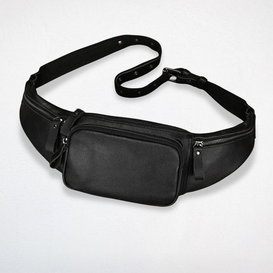 - Le sac banane en cuir noir, pour un look sobre et raffiné