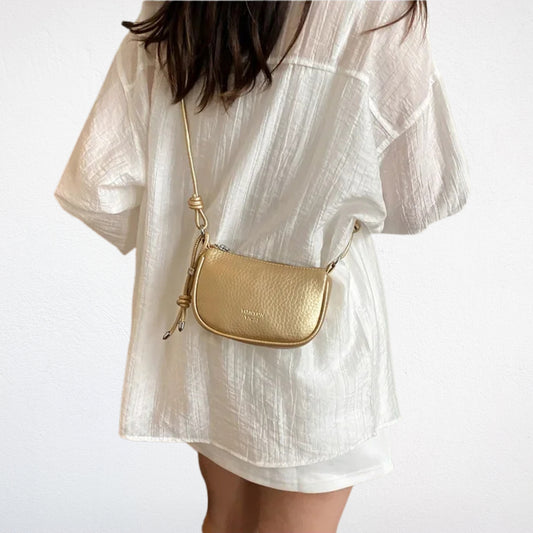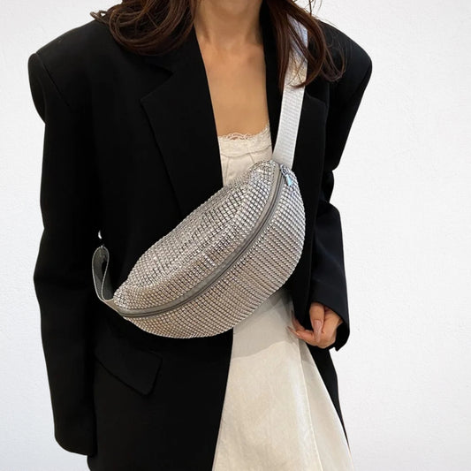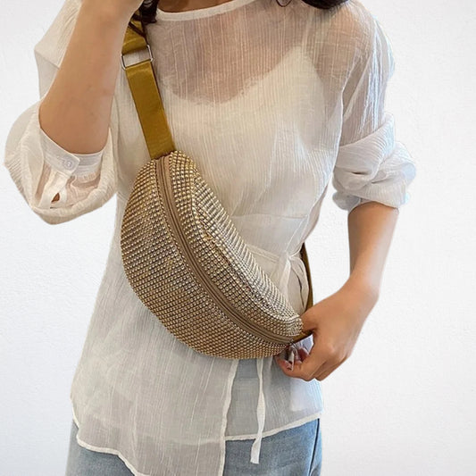 Pour les occasions spéciales, tu peux choisir une sacoche banane ornée de strass, en cuir verni ou métallisé, avec des accessoires dorés ou argentés. Ce style fait briller ta silhouette et attire l’attention.